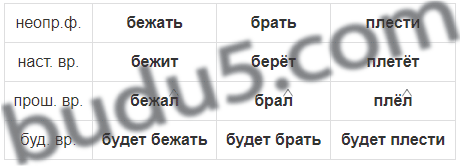 От данных глаголов в неопределённой форме образуй глаголы в настоящем, прошедшем и будущем времени. Запиши в столбик. В глаголах прошедшего времени выдели суффикс -л-.