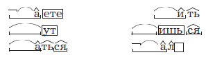 Что можно сказать о глаголах по этим схемам? В каких из этих глаголов есть орфограммы? Запиши по одному глаголу к каждой схеме.