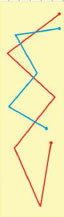 1) На сколько больше звеньев в красной ломаной, чем в синей?