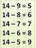 | 14 - 5 = 9 | 14 - 6 = 8 | 14 - 7 = 7 |