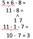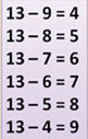 | 13 - 7 | 13 - 9 | 12 - 6 | 5 + 6 - 8 |