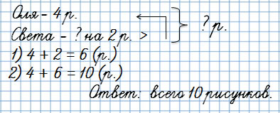 3. У Оли взяли на выставку 4 рисунка, а у Светы — на 2 рисунка больше.