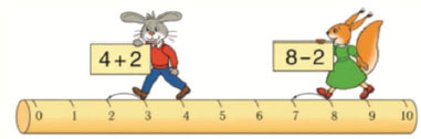 Когда вычитаем, становится меньше. Чем левее, тем числа меньше. Белочка пошла в правильную сторону, но она начала шагать с точки 9, а нужно было начать движение с точки 8.