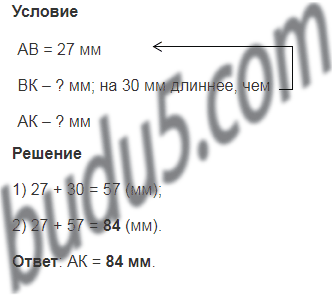 Точка В делит отрезок АК на две части. Отрезок АВ равен 27 мм, а отрезок ВК на 30 мм длиннее отрезка АВ. Найдите длину отрезка АК.