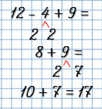 | 12 - 4 + 9 = 17 | 14 - 6 + 5 = 13 |