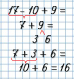 | 7 + 7 - 10 = 4 | 17 - 10 + 9 = 16 |
