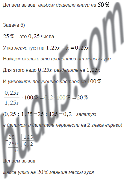 б) Масса гуся на 25% больше массы утки. На сколько процентов масса утки меньше массы гуся?