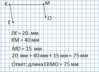 2) ЕК + КМ + МО = 20 + 40 + 15 = 75 (мм)