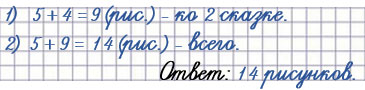 К одной сказке художник сделал 5 рисунков, а к другой — на 4 рисунка больше. Сколько всего рисунков художник сделал к этим двум сказкам?
