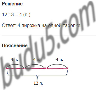 4. На 3 тарелки разложили 12 пирожков, поровну на каждую. Сколько пирожков на одной тарелке?