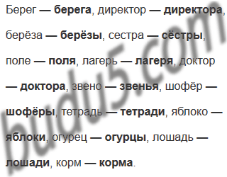 Берег, директор, берёза, сестра, поле, лагерь, доктор, звено, шофёр, тетрадь, яблоко, огурец, лошадь, корм.
