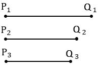 Дано: отрезки Р1Q1, Р2Q2 и Р3Q3.