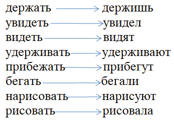 | держать увидеть видеть удерживать прибежать бегать нарисовать рисовать | держишь увидел видят удерживают прибегут бегали нарисуют рисовала |