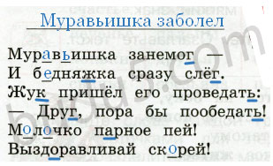 Вставим пропущенные буквы: муравьишка (словарное слово, разделительный ь), бедняжка - бе́дный, молочко - запомни по сочетанию -оло-, скорей - ско́рый.