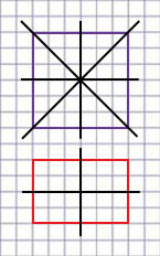 Отступив одну клеточку вниз, расположи 4 квадрата, симметричные верхним.