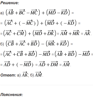 Пользуясь правилом многоугольника, упростите выражение: