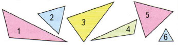 Измерь стороны треугольника 1 и сравни их длины. Измерь и сравни стороны треугольника 4. Объясни, почему такие треугольники называются разносторонними.