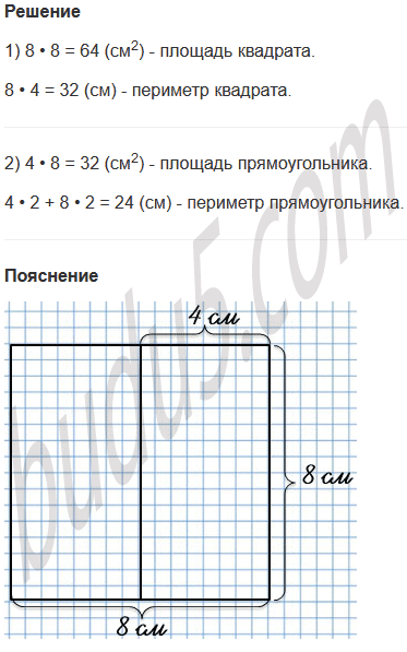 103. Квадрат со стороной 8 см разделили одним отрезком на 2 равных прямоугольника. Найди: