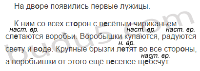 дворе - двор, сторон - сто́роны, весёлым - ве́село, слетаются - полёт, воде - во́дный, летят - полёт, стороны - посторо́нний, веселее - ве́село, щебечут - ще́бет.
