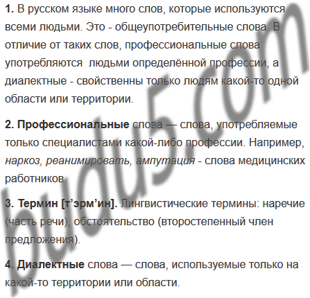 1. Чем отличаются профессиональные и диалектные слова от общеупотребительных?
