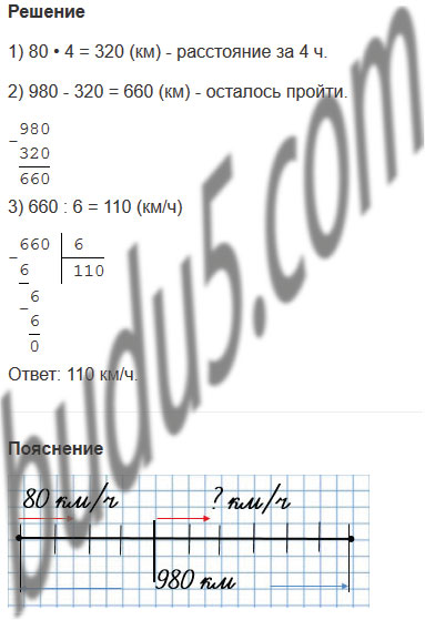 27. Расстояние между городами 980 км. Первые 4 ч поезд шёл со скоростью 80 км/ч. С какой скоростью поезд прошёл оставшийся путь, если он затратил на него 6 ч?