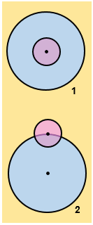 Маленький круг расположен внутри большого круга, их центры совпадают.