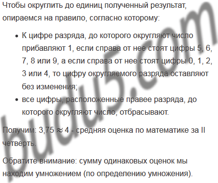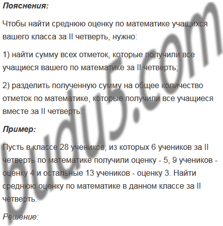 Найдите среднюю оценку по математике учащихся вашего класса за II четверть. Ответ округлите до единиц.