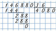 Разделю 146 880 на 36. Выделю первое неполное делимое - 146. Разделю 14 на 3, получу 4 - это пробная цифра.