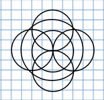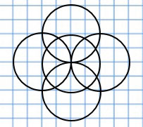 2) Начерти 4 такие же окружности так, чтобы они пересеклись в том же центре.