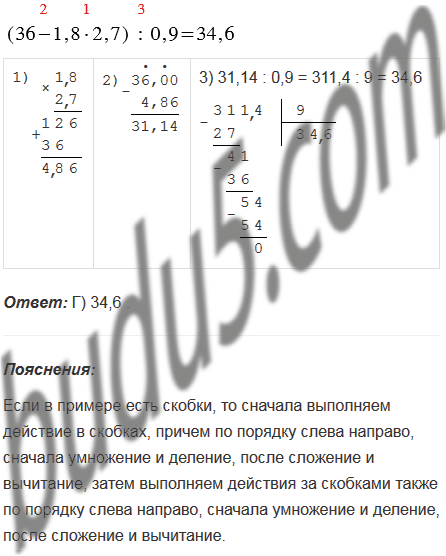 Чему равно значение выражения (36 - 1,82,7) : 0,9?