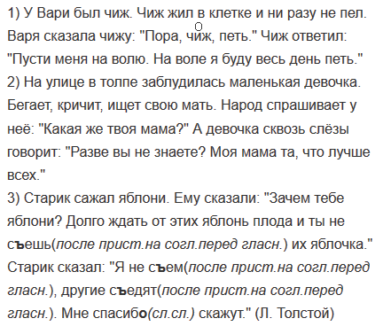 3) Старик сажал яблони. Ему сказали Зачем тебе яблони? Долго ждать от этих яблонь плода и ты не с..ешь их яблочка. Старик сказал Я не с..ем, другие с..едят. Мне спасиб.. скажут. (Л. Толстой)
