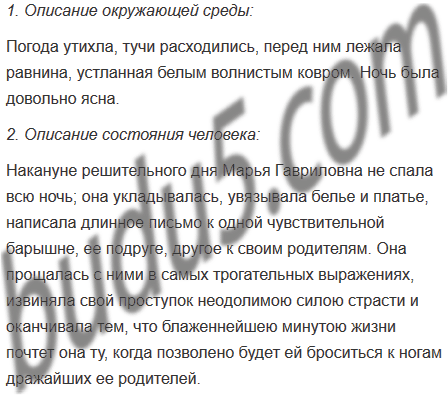 Выпишите из художественного произведения (например, из повести А. С. Пушкина «Метель») типовые фрагменты со значением описания состояния окружающей среды, состояния человека; изобразительное повествование.
