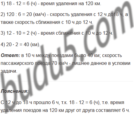 В 12 ч скорый поезд догнал пассажирский, а в 18 ч был уже впереди его на 120 км. Какое расстояние между поездами было в 10 ч, если скорость пассажирского поезда 70 км/ч? Какое данное в условии задачи лишнее?