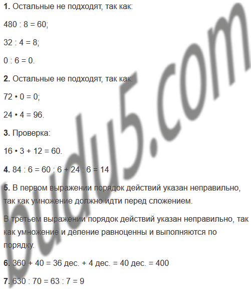 | 1. Укажи все частные, при вычислении которых получается число 6. | 480 : 8 540 : 90 6 : 1 32 : 4 42 : 7 0 : 6 |