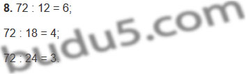 | 8. Укажи число, которое одновременно делится без остатка на числа 12, 18, 24. | 80 48 72 |