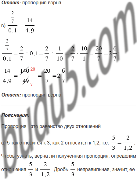 Проверьте полученные пропорции, определяя отношения чисел.