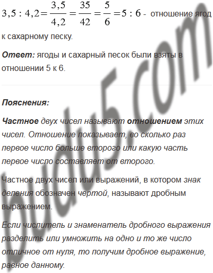 Для варенья на 3,5 кг ягод было взято 4,2 кг сахарного песка. В каком отношении по массе были взяты ягоды и сахарный песок?