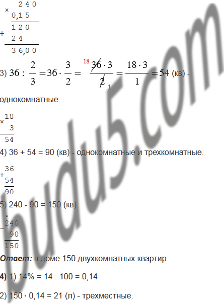 3) Для работников завода построен дом на 240 квартир. Трехкомнатные квартиры составляют 15% всех квартир и