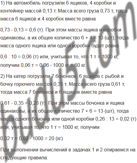 2) На катер погрузили 7 бочонков, 6 ящиков с рыбой и бочку горючего массой 0,35 т. Масса всего груза 0,61 т. Массы бочонка и ящика одинаковы. Какова масса одного бочонка или одного ящика?