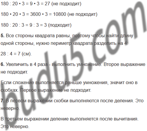 | 4. Укажи выражение, значение которого равно значению выражения 180 : (20 • 3). | 180 : 20 • 3 180 • 20 • 3 180 : 20 : 3 |