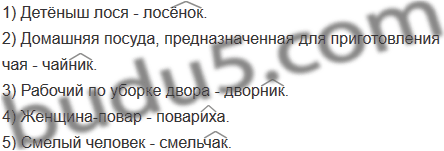 Запишите слова, содержащие суффиксы и имеющие следующие значения.