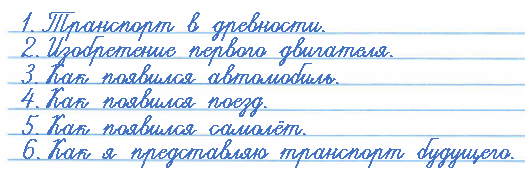 5. Записываем план рассказа об истории различных видов транспорта.