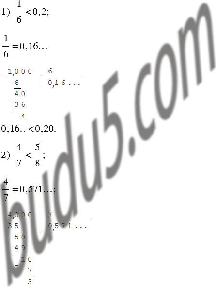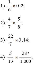 Сравните дроби, записав предварительно обыкновенные дроби в виде конечной десятичной дроби или бесконечной периодической десятичной дроби: