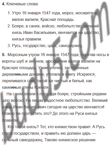 2) На санях ехали к площади бояре, торжественными, стройными рядами шло войско. На раскрасневшихся от мороза лицах радостное любопытство. Великий князь Иван Васильевич сегодня на царство венчается! Можно ли пропустить это? До этого на Руси князья правили.