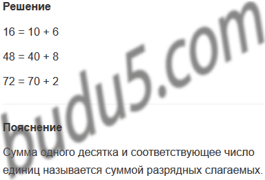 Задание № 2. Запиши в виде суммы разрядных слагаемых числа: 16, 48, 72.