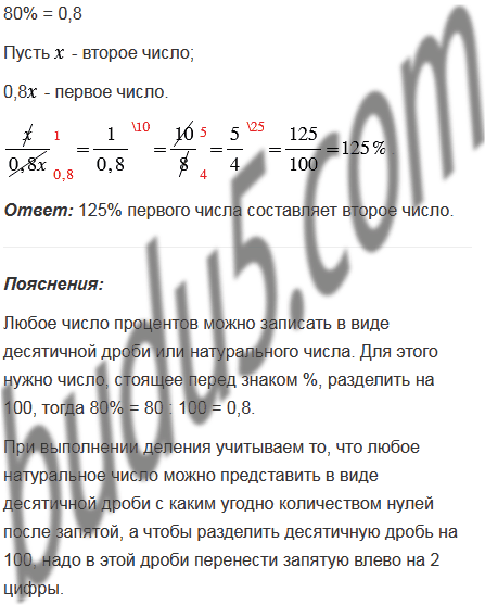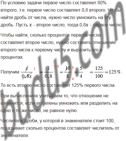 Первое число составляет 80% второго. Сколько процентов первого числа составляет второе число?