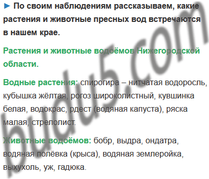 ► По своим наблюдениям расскажи, какие растения и животные пресных вод встречаются в вашем крае.