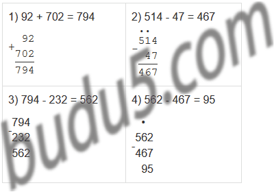 | 700 - (356 + 95) - 157 | (98 + 702) - 232 - (514 - 47) |
