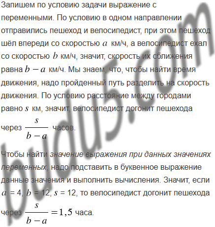 По условию задачи составьте выражение с переменными. Из двух сёл, расстояние между которыми равно