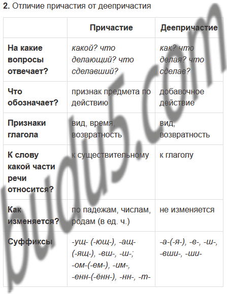 2. * Напишите небольшое сочинение на лингвистическую тему «Отличительные признаки причастий и деепричастий» или представьте информацию на эту тему в вице таблицы, взяв за основу предложенный в «Советах помощника» план. Если у вас возникнут затруднения, найдите ответы на страницах учебника. Каким видом чтения вы при этом воспользуетесь?